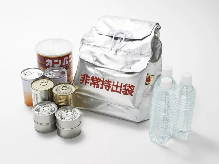 手电筒、方便保存可即食的食物(巧克力等)、水、保鲜膜、收音机、纸巾、用干电池充电的手机充电器、干电池、钱、干净内衣、生理用品、自行车(方便短距离转移)…