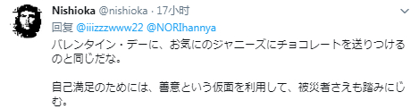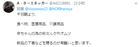 而一位东日本大地震的经历者,在推特上发表了自己对于物资捐赠的看法。
