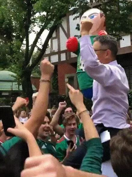 随着比赛的进行,墨西哥球迷的疯狂还在继续。27日小组赛最后一轮,韩国队凭借比赛最后几分钟的两粒进球击败德国队,在把卫冕冠军拉下马的同时,也间接“帮助”墨西哥以小组第二的成绩出线。而韩国队自己却遭遇了淘汰。