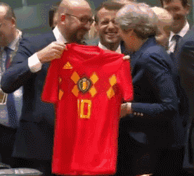 作为东道主,比利时首相米歇尔除了给每一位来访的领导人都准备了一条比利时球迷围巾,还专门送了特雷莎·梅一件比利时主场球衣。当天的比赛,英格兰队始终没能将比分扳平,以0:1输给了比利时。