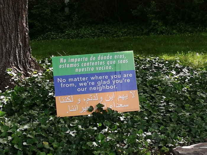 美国因移民问题正闹得沸沸扬扬,但走在路上,不时能看到一些房屋门口树立着牌子,上面写着“不管你来自哪里,我们都很高兴成为你的邻居”之类的内容。这可能就是托克维尔所说的美国“良好的民情”。在这样的民情氛围里,自己在公共场所也会自觉不自觉的严格约束自己,并享受到一种安全感和自由感。