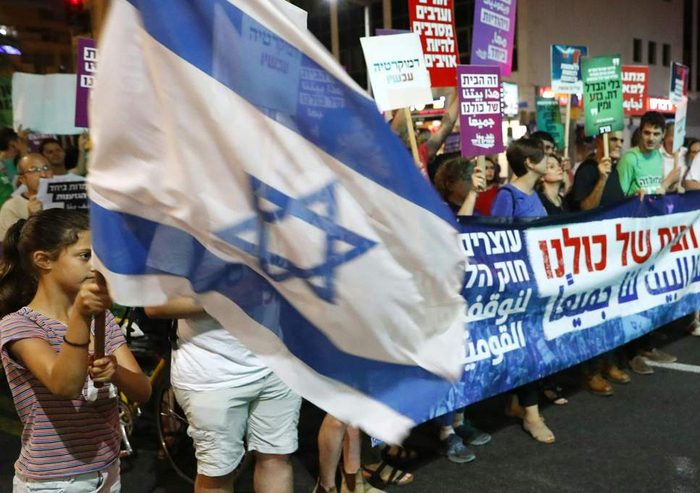 在法案通过后,上千名以色列人走上街头,抗议法案将造成种族隔离,并将阿拉伯裔少数人排除在民主体系之外。