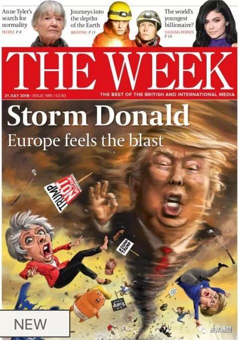 英国版《一周》讲的是特朗普访欧的这阵旋风让欧洲领导人胡乱飞舞——当然还有那个特朗普气球也在天上飞: