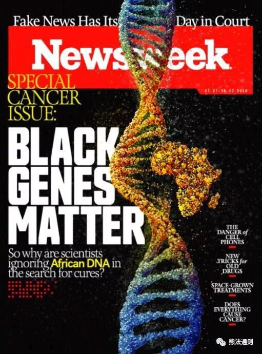 《新闻周刊》的封面标题貌似是“黑人生命重要”那句口号的一个延伸“黑色基因重要”,讲的是科学家为什么在寻找治疗癌症的药方上,忽略了非洲人的DNA?