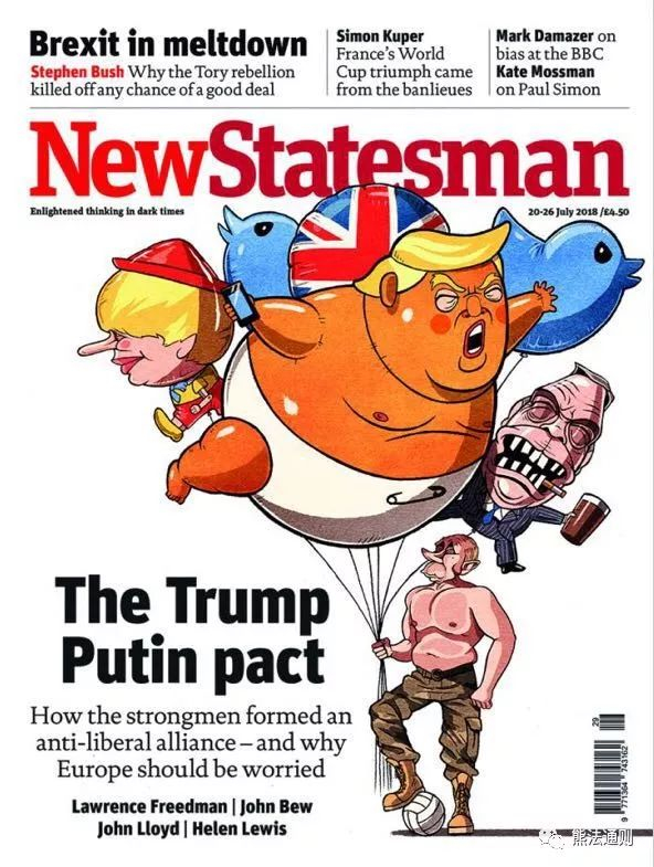 《新国家人》画了一张漫画,特朗普成了普京手里的一个气球~(当然这个特朗普气球是英国佬做的)