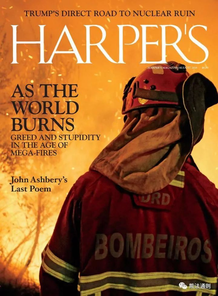 HARPER‘S下个月的封面是当前世界上的各种燃烧之火(包括森林大火以及特朗普的核武大火):