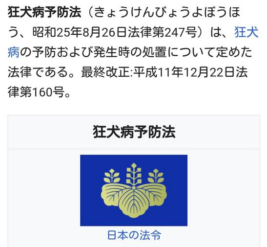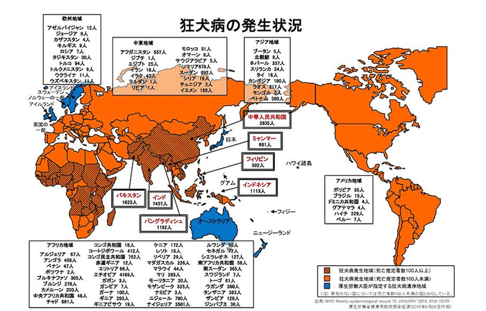 据日本厚生劳动省的数据,自1950年制定了《狂犬病预防法》后,1951年起狂犬病例急剧减少,1956年开始0发病,至今已经半个多世纪没有发现狂犬病例了。