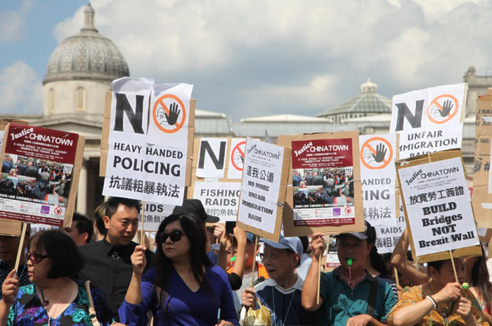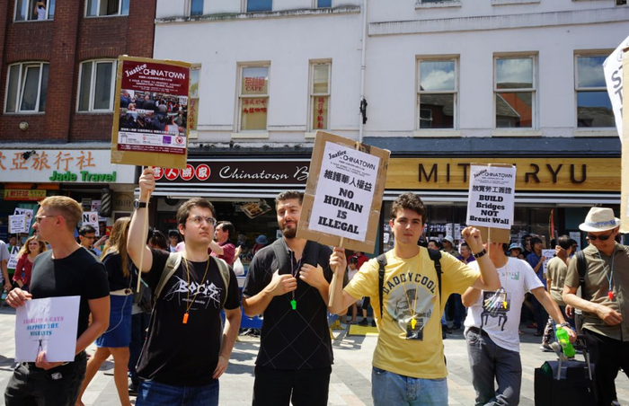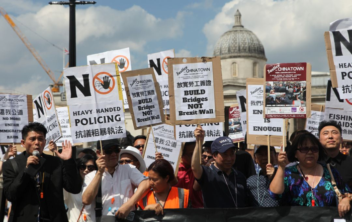 伦敦唐人街华人罢市大游行