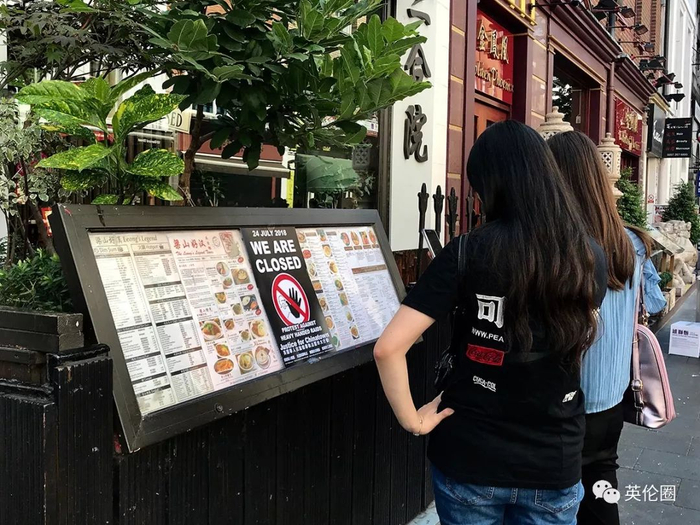 伦敦中国城餐厅门口贴出的“WE‘RE CLOSED”标语。