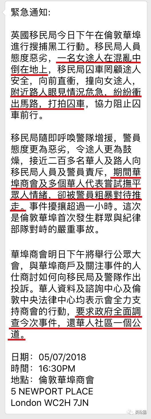 还记得本月初7月5日英国移民局在伦敦中国城突袭华人商铺,搜查黑工,由于执法中存在冲突而引发的争议吗?戳右边回顾完整报道:《英国移民局突袭华人黑工,她躺在执法车前!现场视频截图来了》