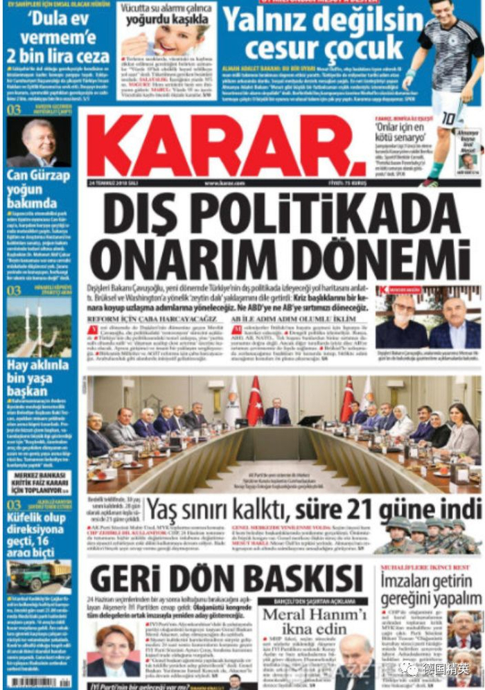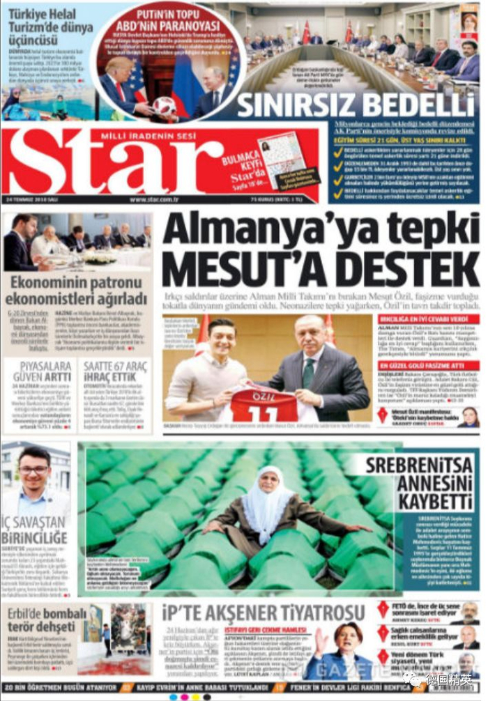 Ø 保守派报纸“Karar”:站在厄齐尔身后“你并不孤单,勇敢的男孩”。