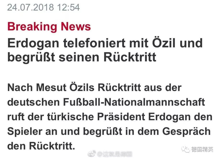 请戳👉:厄齐尔宣布退出国家队:赢球是德国人,输了就是移民