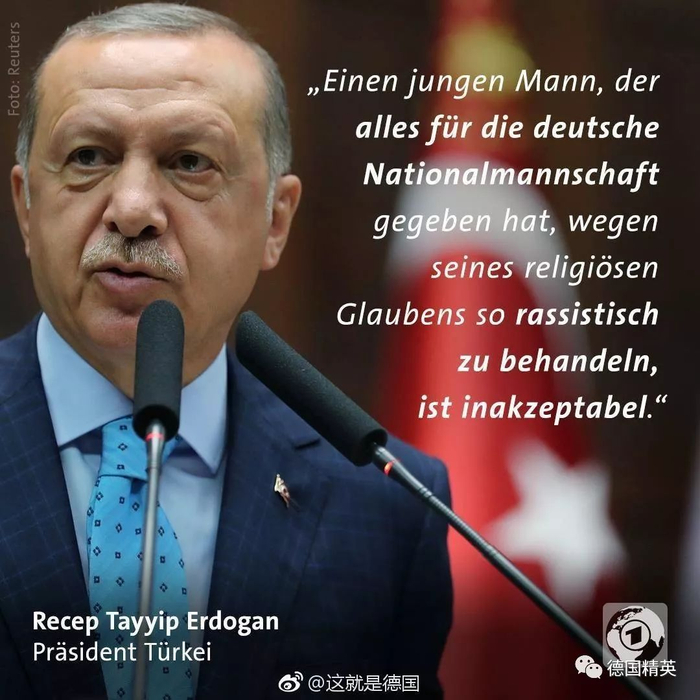 厄齐尔退出德国国家足球队这个大瓜追根溯源本来就跟埃尔多安有着千丝万缕的关系,而埃尔多安真的不怕事大,“不失时机”地为厄齐尔的退队点赞。