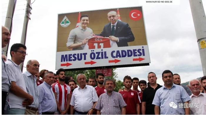 土耳其有一条以厄齐尔命名的街道,自从厄齐尔退出德国国家队后,海报也换成了厄齐尔和埃尔多安的合影。