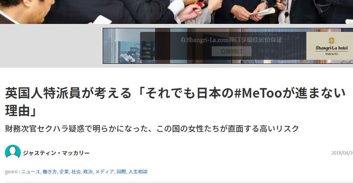 英国卫报的东京特派员记者Justin McCurry在日本“文春online”网站上发表了署名文章,分析了“为什么日本的#Metoo运动无法进行下去”。