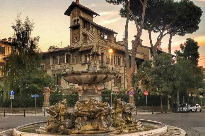 这些与众不同的建筑中,最典型的要数仙女小别墅(Villino delle Fate)、蜘蛛小楼(Palazzina del Ragno)和青蛙喷泉(Fontana delle Rane)了。1927年居民区还未建成时,建筑师Coppedè就去世了,此后的工作由建筑师Paolo Emilio André接手完成。