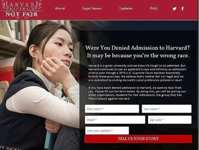 2014年,“公平录取学生”组织起诉哈佛大学违反人权法。