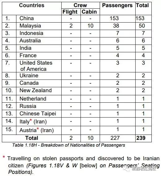 MH370航班上所有人员的国籍情况。(事故报告截图)