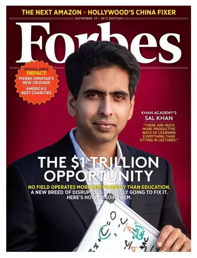 2012年,可汗成功登上《福布斯》杂志封面。《福布斯》撰文称这是一个一万亿美元的商业机会,而当今市值最高的公司是苹果公司,也不过才7000亿美元。