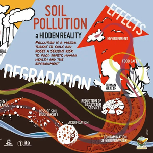 土壤污染一方面损害植物代谢从而减少作物产量,另一方面导致作物无法被安全食用,因此对粮食安全构成了威胁。污染物还直接危害生活在土壤中的微生物,而这些微生物可以保持土壤的肥沃度。同时,如果受到危险元素如砷、铅、镉,以及多氯联苯和多环芳烃等有机化学成分,以及抗生素或内分泌干扰素等药物的污染,土壤会对人体健康构成严重威胁。曼瑟尔就此指出,“土壤或多或少像一块海绵,它的吸收力是有一定限度的,它的饱和度也是有限的。当然,这块海绵也会有它的反应。如果说土壤是海绵,那么它下面是什么?是水。所以,如果我们污染了我们的土壤,我们总是会污染地下水,而地球上90%的淡水都是地下水。所以土壤与植物、动物、营养,与我们所吃的食物和饮用的水的质量有直接的关系。”