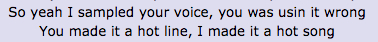 在这首歌当中,Jay Z攻击Nas,说“你做出来的只是热线,而我作的就是热曲。”