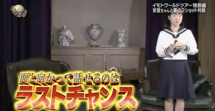 记得她在综艺节目《イッテQ》某一期的外景拍摄中,工作人员告诉她可能会错过安室的演唱会,imoto当场就哭了…