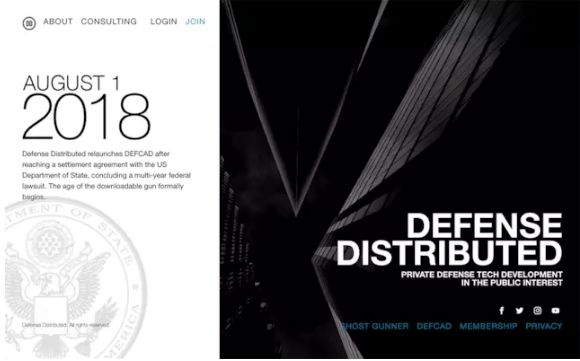 “分布式防御”组织网站注明:“2018年8月,可下载枪支的时代将正式开始”。