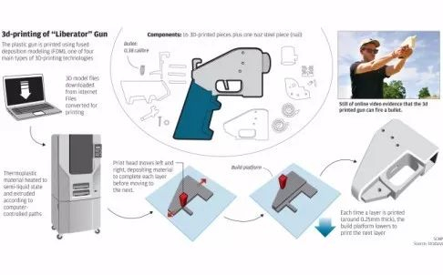这意味着任何人下载到3D打印制枪的图纸后,都可直接用3D打印机制造零部件,然后按照指令拼装即可,3D枪支的威力不逊于真正的枪支。