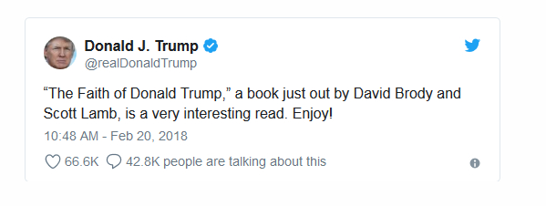 《唐纳德·特朗普的信仰》(The Faith of Donald Trump)作者是美国基督教广播网络首席政治记者,特朗普曾接受他采访。