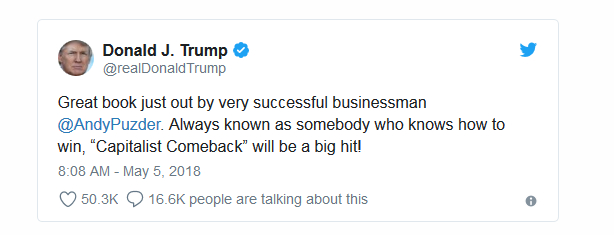 《资本主义的回归:特朗普的繁荣和左派的阻止》(The Capitalist Comeback: The Trump Boom and the Left‘s Plot to Stop It,)作者是特朗普前劳工部长候选人。