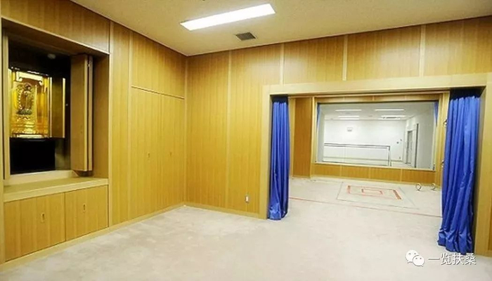 随着麻原等骨干成员被执行死刑,日本充满神秘色彩的死刑执行又一次引发关注。人们想象着死刑执行时的情景,想象着麻原在那个瞬间是如何的表现。在日本,刑事拘禁设施分为刑务所和拘置所。前者是收容服刑者的地方;后者是收容嫌疑人和被告人的地方。但日本的死刑犯也是被关押在拘置所。而一旦死刑确定后,犯人又单独在一个囚室里关押等待执行。除高松之外,各个拘置所都备有死刑执行的场所。暗害的地下室。