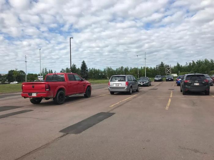 蒙克顿的路虽然不宽,但是停车位很宽,停车位之间的空间也很大。因为皮卡在这里也是常见的日常用车,所以这里的车位都又宽又长,对于我这样在国内经常卡在停车场的人来说这里简直太友好了,尤其我的车比奥拓大不了多少,平常就直接开进车位,不用担心难倒出来,左右偏一点都在车位里。