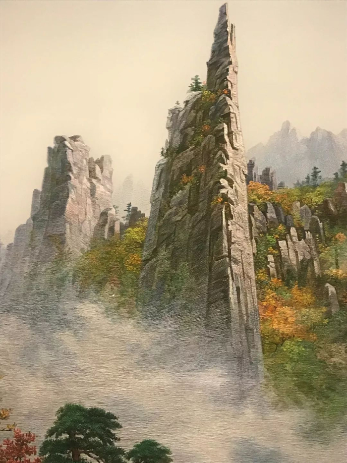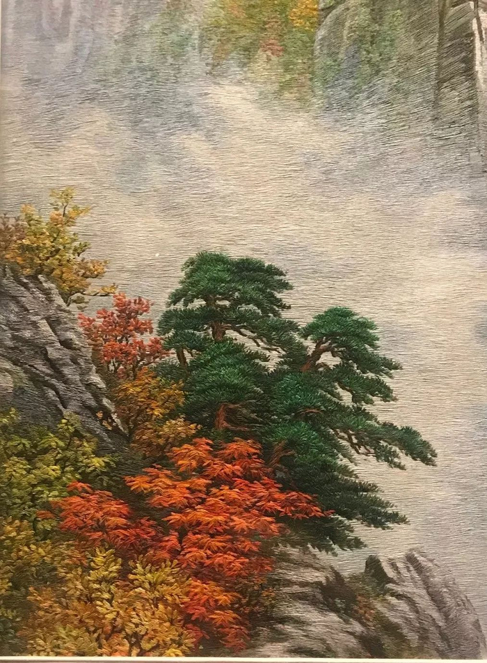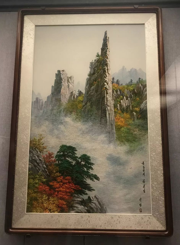 1987年5月,朝鲜劳动党总书记金日成赠送给陈云同志的刺绣《金刚山》。