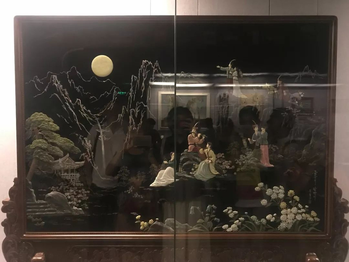 1987年,朝鲜劳动党总书记金日成赠送给邓小平同志的漆屏。名为《金刚赏月》。