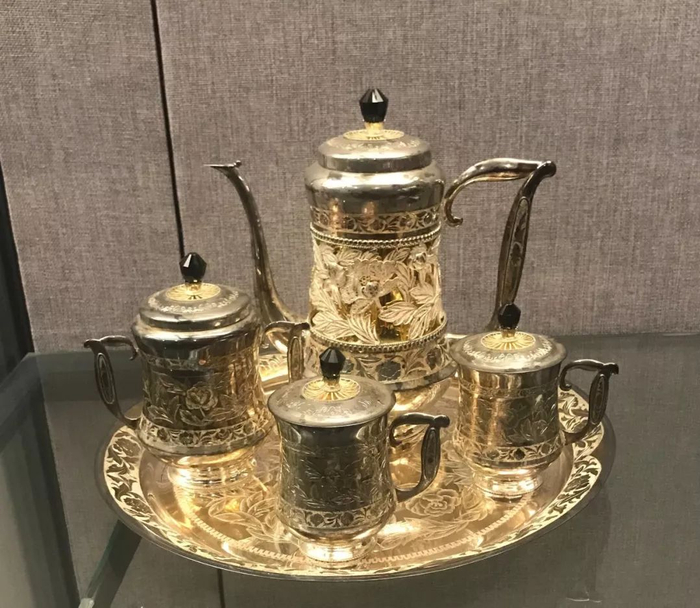 20世纪90年代,朝鲜劳动党总书记金正日赠送给江泽民同志的银茶具。