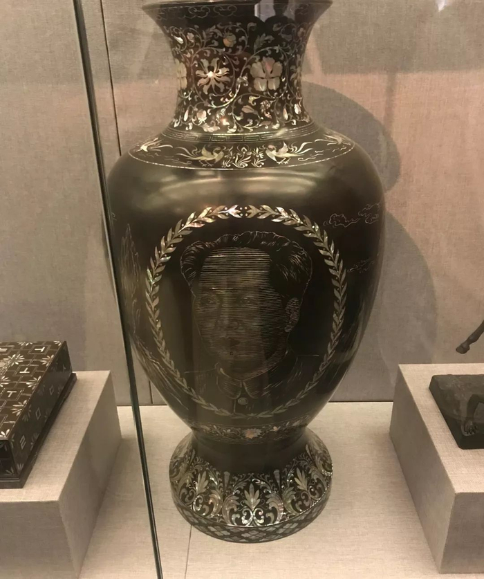 1954年,朝鲜人民会议常务委员会副委员长金应基赠送给毛泽东同志一个嵌螺钿漆花瓶。