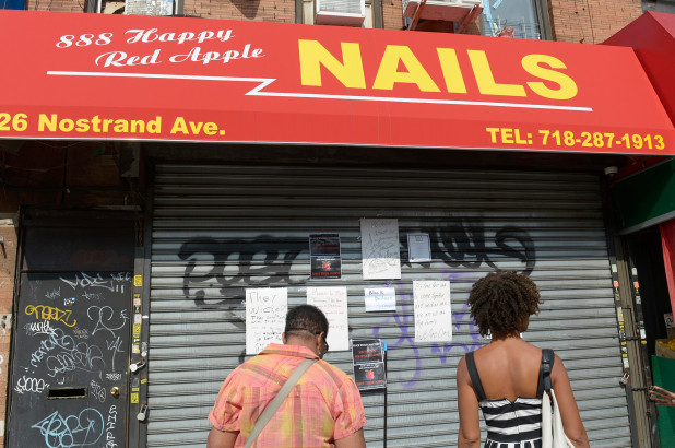 次日,有众多非裔民众涌到店门口,抗议华人员工殴打非裔顾客。抗议民众高喊,“黑人的钱也重要!”,“关闭店铺”,“不要美甲!不要棍子!”等口号。示威者一度达150人,有部分示威者向店铺扔鞋、玻璃瓶等物品,布鲁克林警方后到现场维持秩序。