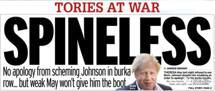 每日镜报:毫无骨气:约翰逊尚未就罩袍言论道歉,但特蕾莎·梅还是不会将他开除出党