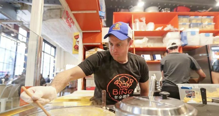 纽约人金伯亮20年前还是“年少无知”,去北京留学时好巧不巧地迷上了北京街边的“煎饼果子”。