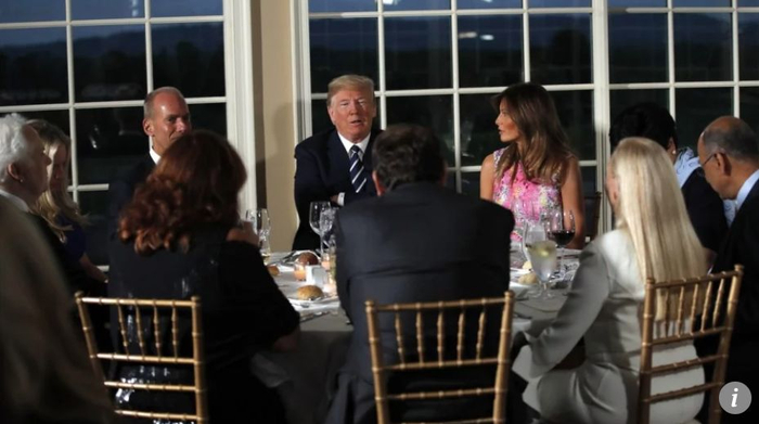 被cue的地点是在特朗普新泽西州私人高尔夫俱乐部的晚宴上。