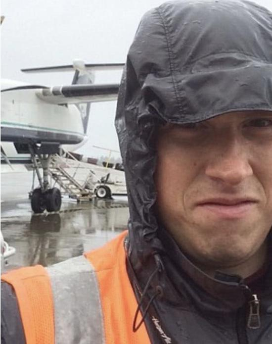 2015年他从阿拉斯加搬至西雅图,随后进入航空公司工作,负责机场地勤。平时就负责为飞机在起飞及降落时指引方向,还有给飞机除个冰之类的活儿。
