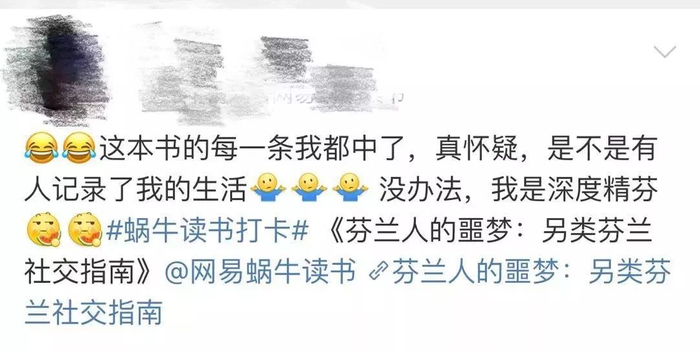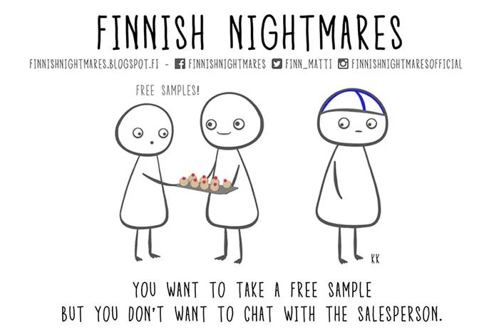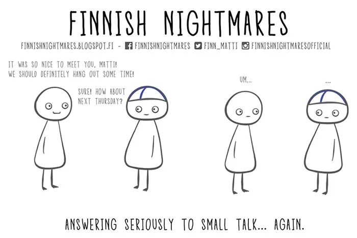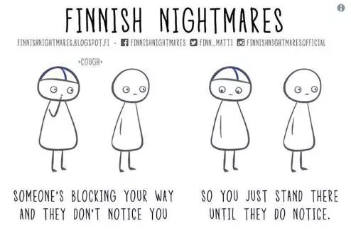 于是乎,很多患有轻微“社交恐惧(social phobia)”的网友都自嘲是“精神上的芬兰人(spiritually Finnish)”……
