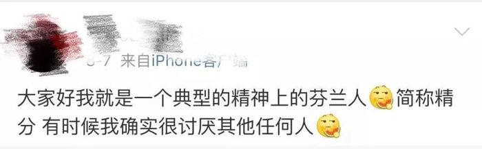 其实,这个“精芬”跟“精神分裂”并无关联,而是“精神上的芬兰人”的简称。