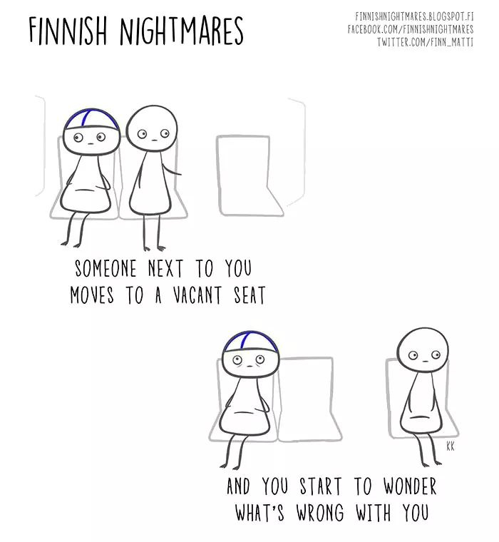坐在你身边的人移到了旁边的空座上,于是你开始怀疑是不是自己做错了什么……