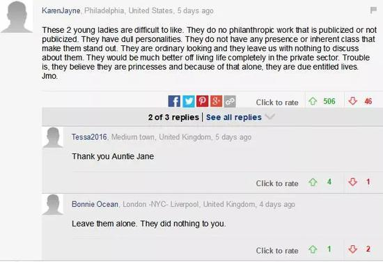 身材、衣品一直以来都是两人被网友diss的理由,偶尔出去度假,被发现了,也会引起一大票英国网友说她们又在浪费纳税人的钱。