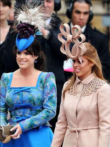 2011年,威廉和凯特大婚时,除了对新人的祝福,还有网友们对碧翠丝公主和尤金妮公主满满的嘲讽,尤其是对她们的帽子。