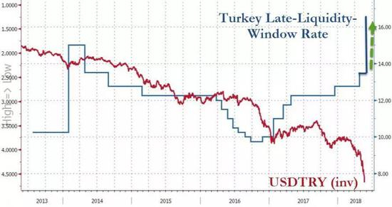 可是,汇率大战还在继续,埃尔多安必须打自己脸提高利率了。5月底,土耳其央行的调控举措姗姗来迟,把利率从8%猛然提到16.5%,8月初又再升为17.75%,希望以此挽救资本外流,保持里拉的币值。