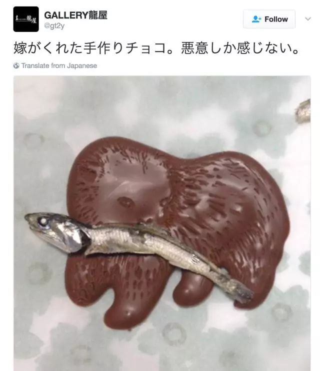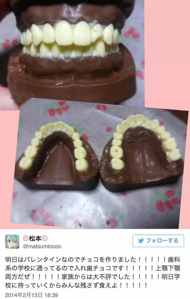 当然,如果妹子们有很多精力,就可以自己做巧克力给心仪的人,其他人那份就可以直接买了。但并不是所有妹子都心灵手巧,比如这位日本男士收到来自老婆的“爱心”巧克力就让他感受到满满的恶意。果然婚姻是爱情的坟墓,结了婚就是不一样。