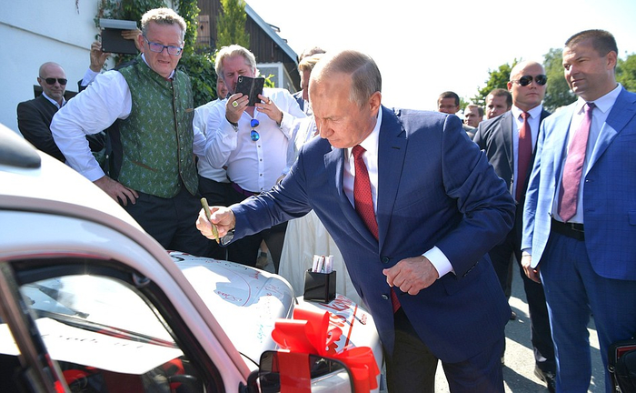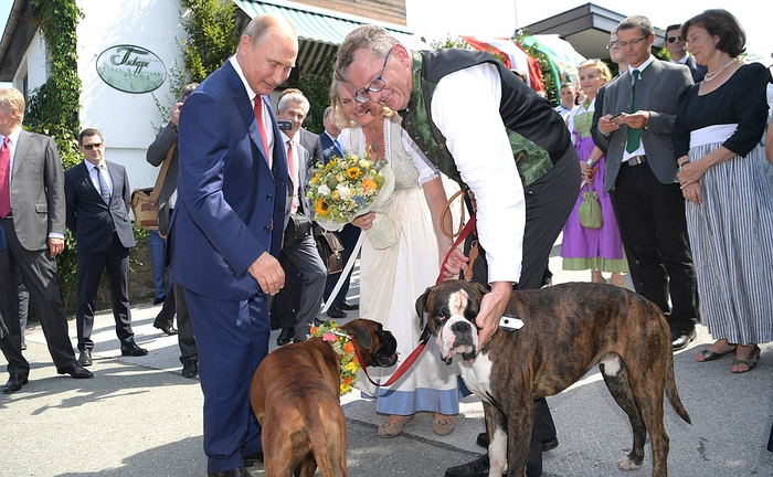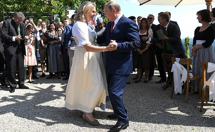 普京赴奥地利参加该国女外长的婚礼,总理库尔茨亲自前往机场迎接,二人一同出席了婚礼。婚礼期间,普京用德语为新婚夫妇送上了贺词,并与新娘克奈尔共舞一曲。在现场来宾要求下,普京还在婚车上签下了自己的名字。