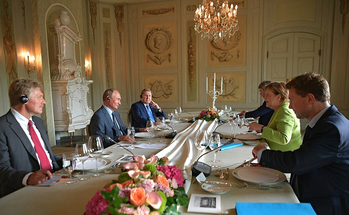 离开奥地利后,普京赴德国梅塞堡,在那里与默克尔会面,二人就乌克兰和叙利亚问题进行了探讨,并讨论了美国与土耳其关系进一步恶化可能带来的后果。德媒分析指出,这次访问不会推动俄德关系大幅改善,但显然两国首脑愿意在共同利益领域合作。